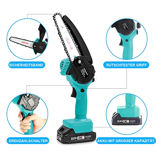 Mini Kettensäge, Smalibal 6 Zoll Akku Elektro Kettensäge Tragbare Wiederaufladbare Handkettensäge mit Ladegerät und 2…