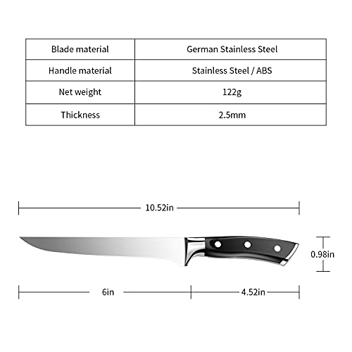 Die starke und flexible Klinge kann das Beste sämtliche jedem Schritt machen, sei es, um die Reste von Schinken, Rippen, Hühnchen, Fisch oder sogar Obst zu schälen. Dieses Ausbeinmesser ist minutiös und beweglich und garantiert ein effizientes Ausbeinen, Filetieren, Enthäuten und Trimmen von Lebensmitteln.