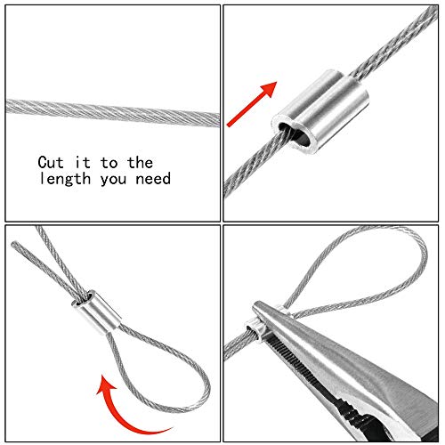 Stahlseil edelstahl werden je nach Bedarf auf verschiedene Größen zugeschnitten, kompatibel mit Hardware als Befestigungselementen, Crimpröhren, Bilderhaken und D-Ringen.