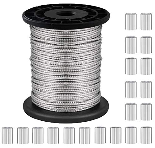 Die Packung enthält eine Rolle edelstahl Drahtseil, 30 m lange, 1,5 mm dicke, hat gute Tragfähigkeit bis zu 30 kg, und 20 Stufe Crimpschlaufe Hülse zur Fixierung von flexiblen Stahldraht.