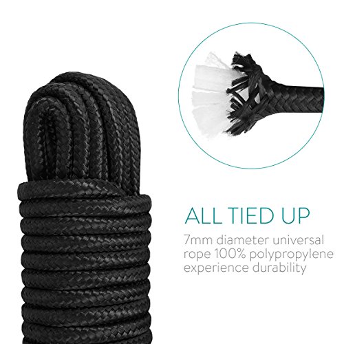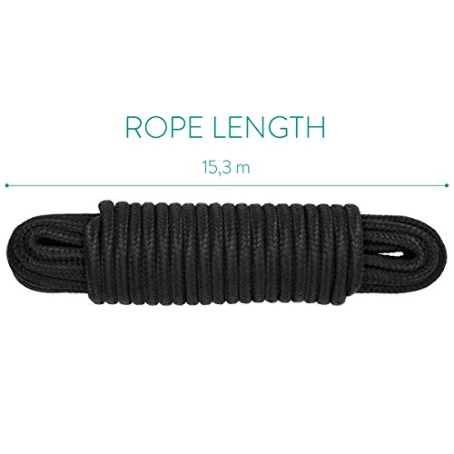 PRODUKT DETAILS: Material – Polypropylen (PP) / Länge – 15 Meter (50 Fuß) / Durchmesser – 7 mm / Bruchlast – 307 kg / Farbe – Schwarz