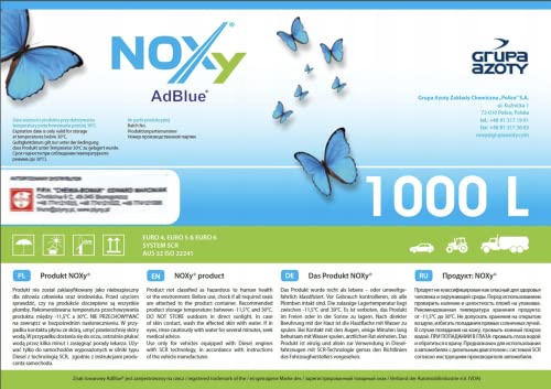 NOXy ist eine 32,5%ige wässrige Harnstofflösung mit transparenter oder leicht gelber Farbe. AdBlue wird in der Abgasnachbehandlungstechnologie von Dieselmotoren mit SCR-Technologie (Selective Catalytic Reduction) eingesetzt. Vorteile der Anwendung von AdBlue: 3-4% geringerer Kraftstoffverbrauch bei EURO IV-konformen Motoren und 5 % geringerer bei EURO V-konformen Motoren Abschirmung der natürlichen Umwelt durch Tätigung der Anforderungen der geltenden Normen zur Regelung der Emissionsgrenzwerte von Schadstoffen, die Möglichkeit, die Serviceintervalle von Fahrzeugen beizubehalten oder sogar zu verlängern. Zusammensetzung : Wasser, Harnstoff (CAS-Nr. 57-13-6) 30 – 35 Gew.-%, Hilfsstoffe. Mögliche Gefahren: Der vielerlei ist nach der Verordnung (EG) Nr. 1272/2008 des Rates qua ungefährlich eingestuft. Nach Hautkontakt: Längerer Kontakt kann Hautreizungen verursachen. Nach Augenkontakt: Längerer Kontakt kann Augenreizungen verursachen. Nach Verschlucken: Verschlucken von großen Mengen (über 50g) führt zu Magen-Darm-Beschwerden. Nach Einatmung: Dämpfe kann Reizungen der Nase und der oberen Atemwege verursachen. Langanhaltende Wirkung: Es sind keine negativen Wirkungen öffentlich. Brand und thermische Abbauprodukte: Währenddessen thermischem Zerfalls kann das Einatmen der Gase Reizungen verursachen und ekelhaft auf das Atmungssystem sich abrackern. Manche Wirkungen auf die Lungen können mit Verzögerung auftreten. Brand und Beheizung: Währenddessen der Beheizung löst sich Harnstoff auf und scheidet Ammoniak alle. Währenddessen des Brandes können sich Ammoniak und Stickstoffoxide – NOx enthaltenden toxische Schwaden ausscheiden. Lieferumfang: 1x 1000L AdBlue NOXy (IBC Container)