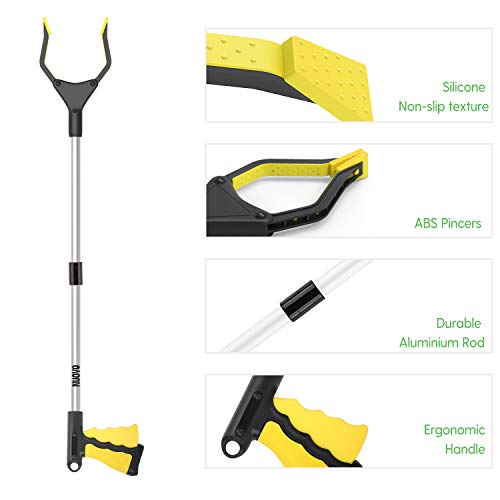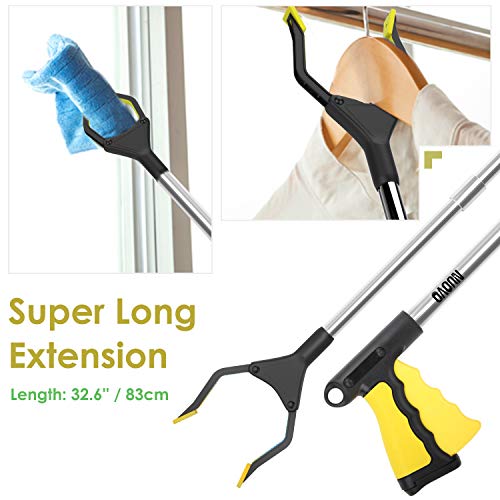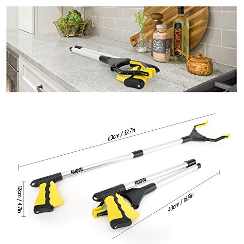 Nuovoware Reacher Grabber Tool, 32″ Foldable Handy Pick Up Grabber, Lightweight Long Mobility Aid, Reaching Assist Tool for Items on High Cabinets, Litter Picker, Arm Extension, Yellow