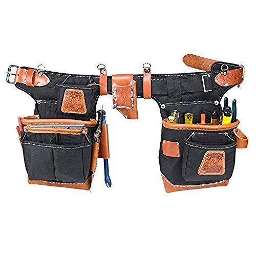 A new, unique design for production carpenters;Main bags are 10 deep and feature a full leather boot;The leather FatLip keeps the bag formed, open, and protected against abrasion;Unique signature tool bag design has 24 pockets and tool holders;Crafted from high density neoprene, rugged commercial nylon, and full grain leather;The leather Fat Lip keeps the bag formed, open and protected against abrasion;Crafted from high density neoprene, rugged commercial nylon and full grain leather