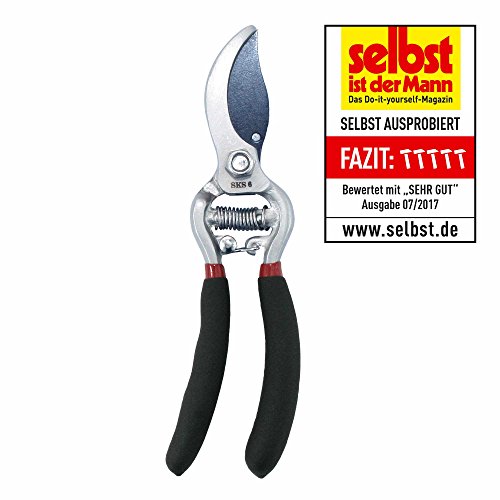 Lieferumfang: 1 SKS6 + 1 Ersatzklinge Silber / SKS 6 geschmiedete Zerwirkschere und Jagdschere Die geschmiedete SKS 6 als kleiner Allrounder sollte im Gepäck eines Jägers nicht fehlen. Da sie geschmiedet ist, ist sie großartig robust, demgegenüber sehr leicht und bricht nicht. Perfekt geeignet zum Rippen und Haut sicheln. Sie schneidet sehr saubere Schnitte, quetscht und reißt nicht. Auch super geeignet für den Hochsitz, um dickere Äste durchzuschneiden. Die Klinge ist bis zu vier Mal nachschleifbar, hat 60 hrc rockwell und ist nach 80.000 Schnitt austauschbar. Jederzeit sind bei uns alle Ersatzteile erhältlich. Die Feder der SKS 6 ist aus Edelstahl, mit vier Sicherungsbolzen gesichert und springt nicht raus. Da es eine Spiralfeder ist, ist der Schweiß (Blut) super leicht zu reinigen und nichts klebt. Der Verschluss ist ebenso aus Edelstahl und klappt beim sicheln nicht zu, da er nach unten geklappt ist. Wenn die SKS 6 zu ist, ist sie vorne super geschmackvoll und kann einfach in den Rucksack gesteckt werden. Ist sie hingegen schneefrei, ist die Spitze der Klinge so spitz, dass man sauber und exakt das Fleisch bis zu den Knochen ablösen kann. Klassiker: Schon seit über 100 Jahren gibt es diese klassischen Scheren, wenn es um gärtnerische Schneidwerkzeuge geht. Diese geschmiedeten Ganzstahlscheren wurden bereits um 1900 hergestellt. Die hochwertigen Klingen gewährleisten einen absolut sauberen Schnitt ohne Quetschen der Triebe. Ein großer Vorteil ist die 4-fach gesicherte Spiralfeder, die nicht herausspringen kann und der Verschluss, der sowohl für Rechtshänder als auch für Linkshänder geeignet ist. Heute sind diese hochwertigen Scheren beschichtet und sehr hochwertig verarbeitet. Material: Diese Ganzstahlscheren sind auf beiden Seiten aus je einem Fragment geschmiedet und sehr hochwertig verarbeitet. Die antihaftbeschichtete Klinge ist aus durchgehend gehärtetem Karbonstahl und läßt sich problemlos nachschärfen und austauschen.