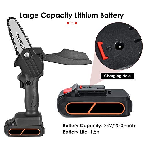 【Einhandbedienung】: Diese Mini-Kettensäge ist leicht und kompakt, sodass sie in einem Rucksack verstaut werden kann, wenn Sie ausgehen. Frauen können es leicht prüfen und verwenden, und halten es für eine lange Zeit ohne Ermüdung.
