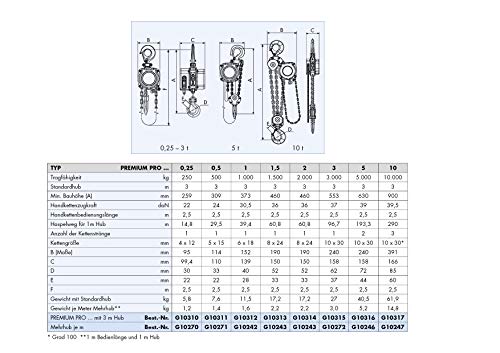 Including: test certificate with overload test, German operating instructions, CE declaration of conformity and test book