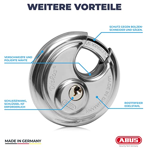 🔒 𝗠𝗔𝗥𝗞𝗘𝗡𝗤𝗨𝗔𝗟𝗜𝗧Ä𝗧 𝗩𝗢𝗡 𝗔𝗕𝗨𝗦 – Dank unserer Kooperation mit dem deutschen Hersteller ABUS, haben wir einen starken Partner gewonnen, welcher Ihr Deichselschloss perfekt ergänzt. Das ABUS Diskus-Vorhangschloss bietet konstruktionsbedingt einen hohen Diebstahlschutz.