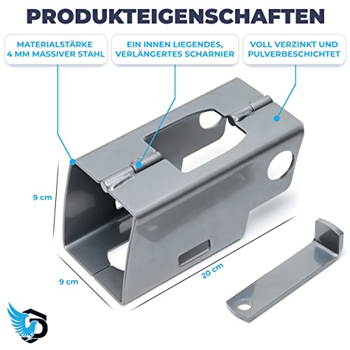 🔒 𝗘𝗫𝗭𝗘𝗟𝗟𝗘𝗡𝗧𝗘 𝗩𝗘𝗥𝗔𝗥𝗕𝗘𝗜𝗧𝗨𝗡𝗚 – Das DEAGLE Anhängerschloss besticht mit hochwertiger Verarbeitung, welches durch eine stetige Qualitätsinspektion überprüft wird. Abgerundete Kanten sorgen für eine angenehme Handhabe bei der Sicherung Ihres Anhängers.