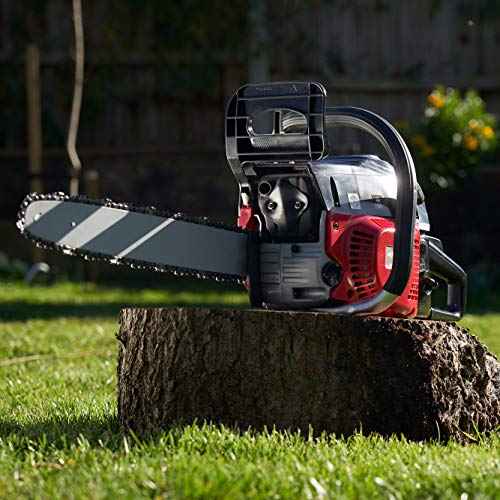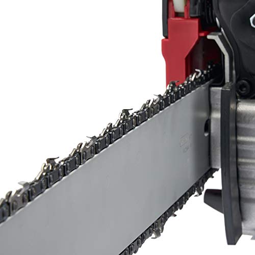 Spüren Sie die Kraft: Trotz ihrer kompakten Größe kann unsere leistungsstarke Benzin-Motorsäge intensive Aufsatz in jeder Holzart leisten. Sie ist mit einer 45cm langen Schiene mit Racing-Kette ausgestattet, die von einem Motor mit 46cm³ Hubraum angetrieben wird, der eine Drehzahl von 11.000U/min erzeugt