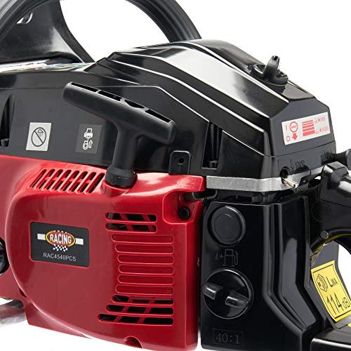 Racing präsentiert seine Benzin-betriebene Kettensäge RAC4545PCS-3 mit den folgenden Eigenschaften: 46cm3 Hubraum. 2-Takt-Motor. Luftgekühlter Motor. Drehgeschwindigkeit: 11000U/min. Unsere Motorsäge ist leistungstark und dabei leicht zu bedienen. Ihr großer Tank erlaubt langes Arbeiten und das Antivibrationssystem verhindert vorzeitige Ermüdung. Art des Starts: manueller Abfahrt mit Launcher. Länge der Stange: 45cm. Schnittlänge: 43cm. Rennlenker und Kette. Kettenvorschubgeschwindigkeit: 21m/s. Kettenteilung 0,325. Abstand zwischen den Zähnen: 3,25mm. Dicke der Kettenglieder: 0,58mm. Fassungsvermögen des Kraftstofftanks: 550ml. Nettogewicht: 6kg. Abmessungen: 49 x 26 x 29cm.Racing bietet eine breite Palette an langlebigen und zuverlässigen Produkten, die Ihre Erwartungen vollenden und Ihnen die Aufsatz und das tägliche Leben lindern. Unsere Produkte sind eine Garantie für Qualität, ebenso wie unser Kundenservice. Bitte kontaktieren Sie uns, wenn Sie Fragen haben, wir helfen Ihnen gerne weiter. Ihre Zufriedenheit ist unsere Priorität.