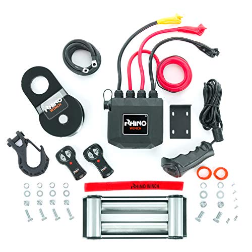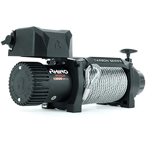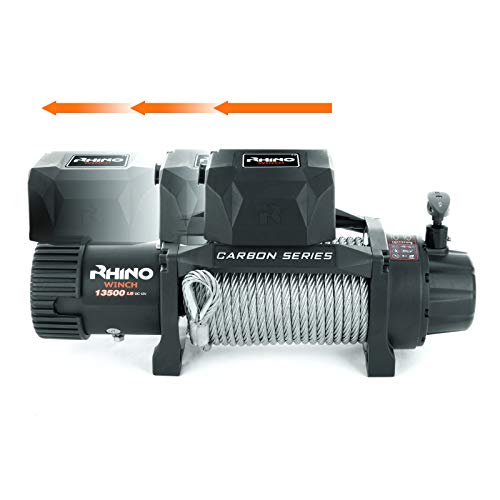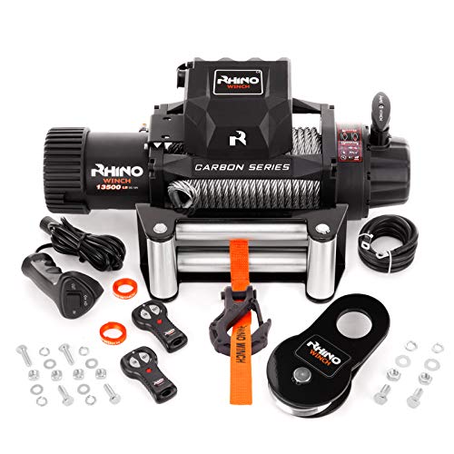 Rhino 12V Elektrische Seilwinde Stahl mit Fernbedienung und Mobilteil, 13,500lb/6125kg – Carbon
