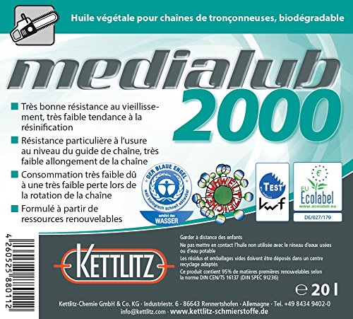 KETTLITZ-Medialub 2000 ist ein Sägekettenhaftöl auf Basis pflanzlicher Öle und ist frei von Synthese- und Mineralöl.
