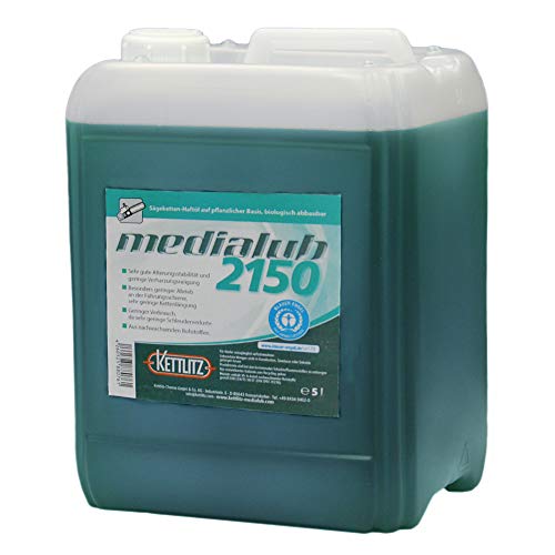 KETTLITZ-Medialub 2150 ist ein Sägekettenhaftöl auf Basis des nachwachsenden Rohstoffes Rapsöl und frei von Synthese- und Mineralöl. Spezielle Additive schützen das Produkt vor vorzeitiger Alterung bzw. Verharzung, optimieren die Viskositätslage und bearbeiten die Haft- und Gleiteigenschaften. Besonders bei einer hohen Ketten Umfangsgeschwindigkeit wird die Scheuern an Kette und Schiene wesentlich vermindert. Somit wird ein geringer Verbrauch an Kette und Kettenrad erzielt. Durch die Additivierung ist weiterhin der Einsatz unter extrem winterlichen Bedingungen (Kältetest bei 72 h/-18 °C bestanden) gewährleistet. Vom KWF (Kuratorium für Waldarbeit und Forsttechnik e. V.) wurde im November 2014 die Gebrauchstauglichkeit geeignet der Zeichenvorgabe nach RAL-ZU 178 überprüft. Sintemalen wurde bestätigt, dass Medialub 2150 bei Überprüfung der Schmiereigenschaften nach ISO/TS 19858:2014 eine „sehr geringe Kettenlängung“ verursacht und bekannt als in den Praxiserprobungen „gute Gebrauchseigenschaften“ hat. Aufgrund seiner Eigenschaften kann das Bioöl ganzjährig für hohe und höchste Beanspruchung, wie z. B. an schnell laufenden Ketten von Harvestern, eingesetzt werden. KETTLITZ-Medialub 2150 ist nicht wasserlöslich, so dass bei normalem Gebrauch oder z. B. bekannt als Leckagen das Produkt weitgehend in den oberen Erdschichten verbleibt und somit nicht in das Grundwasser getragen wird. Zusätzlich erfüllt das Öl die Kriterien für das Umweltzeichen „Blauer Engel“ (RAL-UZ 178, Vergabegrundlage vom Juli 2014). Für die Vergabe des Umweltzeichens wurde der Rabatt nachwachsender Rohstoffe allemal, der nach DIN CEN/TS 16137 (DIN SPEC 91236) ca. 95% beträgt. Medialub 2150 wurde weiterhin in die Datenbank des FNR (Fachagentur Nachwach sende Rohstoffe e.V., siehe https://datenbank.fnr.de/produkte/bioschmierstoffe/) aufgenommen.
