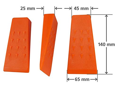 Sägenspezi Fällkeil 3’er Set 140 mm sämtliche Antiblockiersystem Forstkeil Material: Antiblockiersystem (enorm hohe Zähigkeit, höhere Festigkeit im Einigung zu anderen Kunststoffkeilen und 5-fach höhere Kerbschlagsfestigkeit). Hochschlagsfest. Farbe: signal orange Gewicht pro Segment: 116 g Maße: Länge: 140 mm / Breite achteraus: 45 mm / Breite vorne: 65 mm / Höhe: 25 mm Die gezackte Erscheinung (Spikes) verhindert ein Zurückprallen des Keils nach dem Einschlagen. Es ist womöglich, zwei Keile übereinander einzuschlagen (Zacken nach aussen), ohne dass diese verrutschen. Bis -40 Abstufung Celcius Dauergebrauchstemperatur.