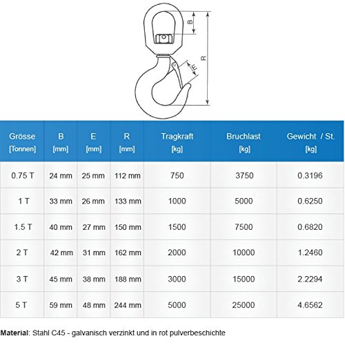 Tragkraft= 1000kg Bruchlast= 5000kg – Stahl C45