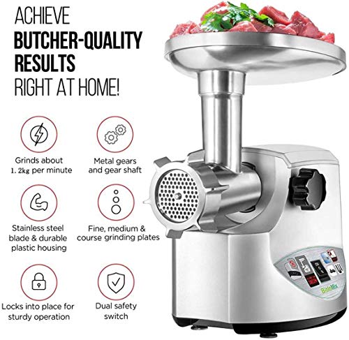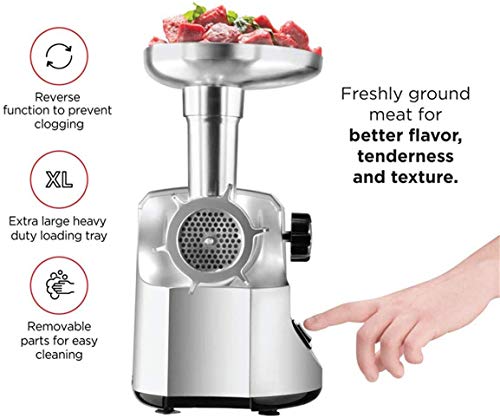 Schneller frischer Geschmack: Dieser Fleischwolf verfügt über einen leistungsstarken 700-Watt-Motor, der 3,5 kg Rindfleisch, Lammfleisch, Hühnchen, Schweinefleisch und mehr pro Minute mahlt, sodass Sie noch schneller frische Proteinmischungen herstellen können. Die Rückwärtsfunktion verhindert ein Verstopfen, sodass Sie ohne Unterbrechungen weiter schleifen können. Für zartere Ergebnisse können einige Fleischsorten zweimal gemahlen werden. Fettfleisch sollte nichtsdestoweniger wohl einmal