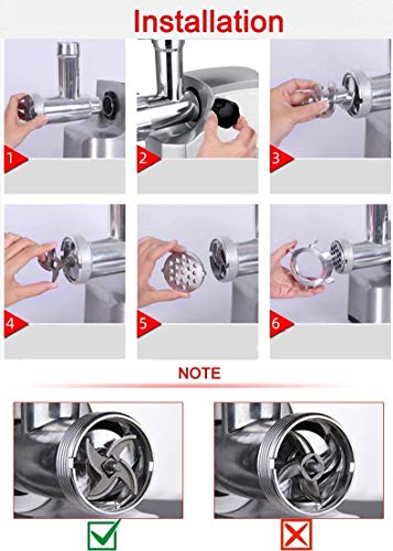 【Multifunktionaler Fleischwolf】 Neben der Herstellung von Hackfleisch können Sie damit auch verschiedene Arten von Würstchen und Kubbe herstellen. Enthalten sind 3 verschiedene Metallschneidplatten für grobes, mittleres und feines Mahlen von Fleisch, 3 Größen von Wurstfüllsubstanzen zusammen mit dem Adapter, 1 Kubbe-Abfassung. Sie können die köstlichsten Fleischpasteten, Burger, Fleischbällchen, Würste und mehr zubereiten. Zu Potte kommen Sie Ihre unterschiedlichen Anforderungen.