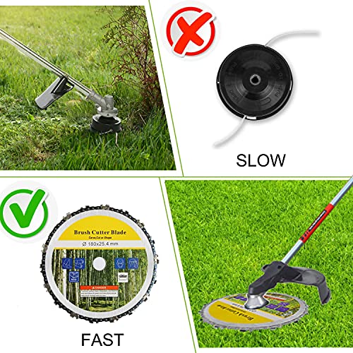 Hochwertige Materialien: Der Grasschneider-Schneidkopf besteht die Gesamtheit Manganstahl mit stabiler Leistung, Aggressivität und Alterungsbeständigkeit. Entwickelt, um schnell und einfach kleine Bäume, dichte Büsche und Unkraut zu abholzen.