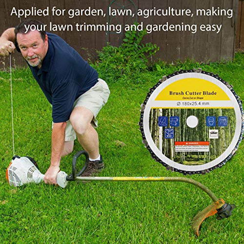 Verpackung: Wir verwenden Blisterverpackungen, die Verpackung ist fest und schön, der Durchmesser des Grasscherenkopfes beträgt 180 mm und der Durchmesser des Befestigungslochs beträgt ca. 25,4 mm. Hinweis: Bevor Sie die Klinge des Grasschneiders verwenden, haben Sie sollte Schutzausrüstung katalysieren (Gesichtsschutz, Gehörschutz, feste Kleidung, hohe Stiefel und Handschuhe).