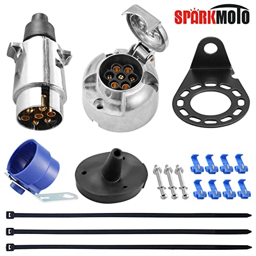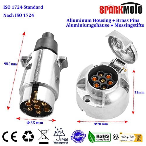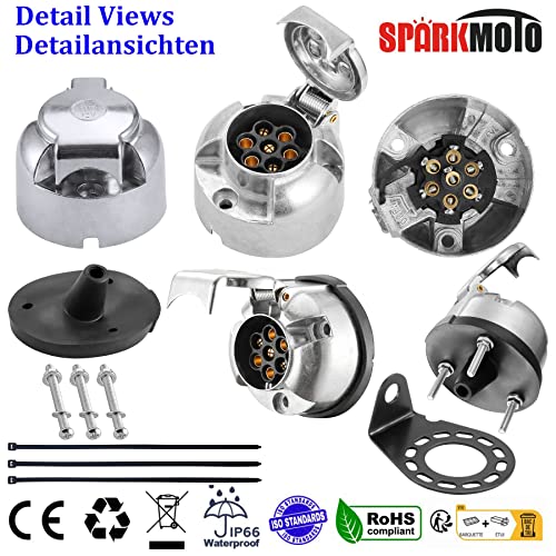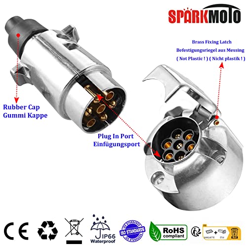 Die wasserdichte 7-polige 12-V-Anhängersteckdose der Marke SPARKMOTO aus Metall mit komplettem Installationszubehör entspricht der Norm ISO 1724.