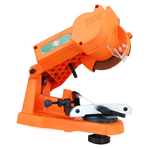 Universelles Sägekettenschärfgerät zum anspitzen aller gängigen Sägeketten. Ausrüstung: Robuster Maschine, Handrad zum eichen der Schärfwinkel, Kettenfixie- rung im Übrigen Verhaftung; Technische Unterlagen: Schnittstelle: 230V/50Hz Leistung: 85W Leerlaufdrehzahl: 4800min-1 Ø Schleifscheibe: 108x23x3,2mm (1Stk.) Einstellwinkel: 35° frisch/rechts Ballast: circa 2,2kg.