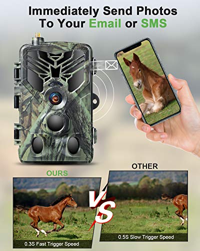 ☛ 4G-Signalübertragung:EU-weit Bilder empfangen. Dank Roaming-SIM(Nicht enthalten) kann Ihnen die Kamera die Bilder leer jedem EU-Land zusenden. Weitere Einstellungen oder Mehrkosten entfallen. Sie können Fotos per E-Mail und MMS oder Cloud-Server empfangen(Der PIN-Code muss gelöscht werden, wenn die SIM-Karte in das Aggregat eingelegt wird.)