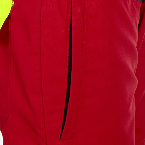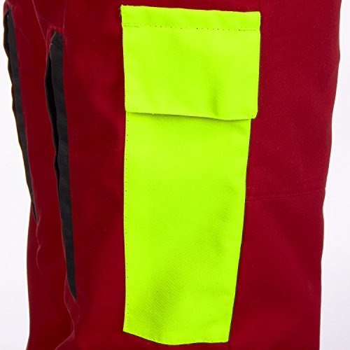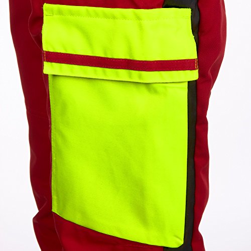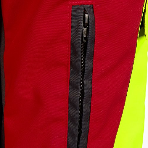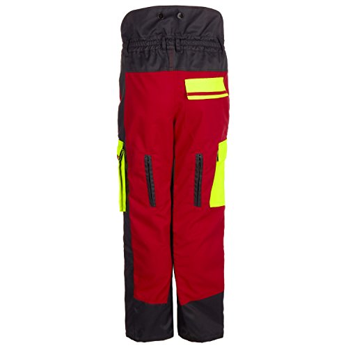 Nass- unter anderem schmutzabweisendes Gewebe via 7-lagiger Schnittschutzeinlage, zwei Seitentaschen via Reißverschluss