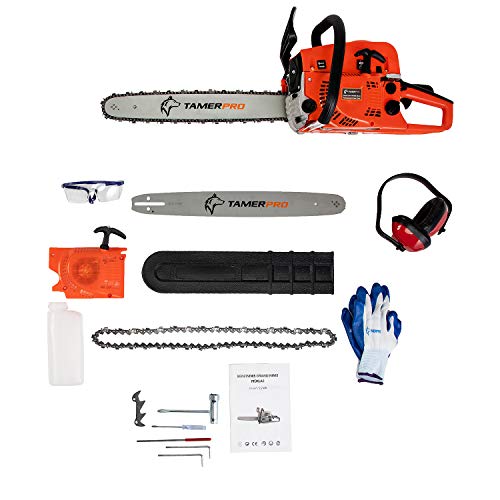 Die Benzin Kettensäge TamerPro TY5200-A / 2,2 kW gewährleistet eine außerordentlich komfortable Bedienung, da diese Hersteller verstehen, dass der sichere und robuste Betrieb der Geräte in der Forstwirtschaft üppig bedeutet. Dicke Äste und Stämme zersägen – das schafft kein anderes Werkzeug so schnell wie eine Motorsäge Benzin. Mit dieser Benzin Kettensäge Tätig sein Sie leistungsfähig, bequem und ohne ungeplante Überraschungen. Diese Kettensägen sind ideal für Hausbesitzer. Sie eignen sich für Schneidarbeiten und Freizeitaktivitäten, wie z.B. das Mähen von Ästen im Garten.