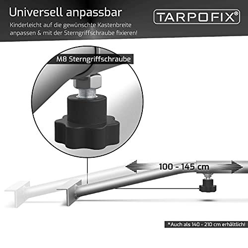 ✔ UNIVERSELL ANPASSBAR – Aufgrund durchdachter Teleskopfunktion, passen Tarpofix Planen Bügel super bei vielen gängigen Autoanhänger, wie z.B. Stema, Humbaur, Brenderup, Böckmann TPV & weitere mit einer Kastenbreite von 100-145 cm.