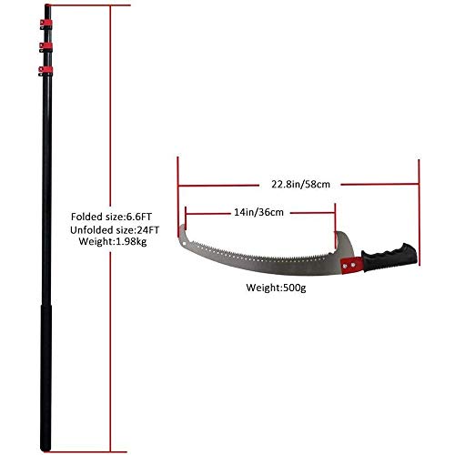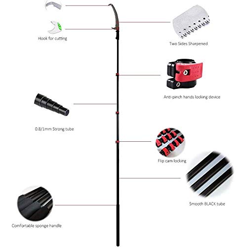 Upgrade-Material: 2-in-1-Fotografie ohne Leiter geschnitten und gesägt. Teleskopstange allesamt Aluminiumlegierung, Mangan-Bügelsäge, leicht und langlebig, wasserdicht und rostfrei. Müheloses Abschneiden von hohen Bäumen und dichten Hecken