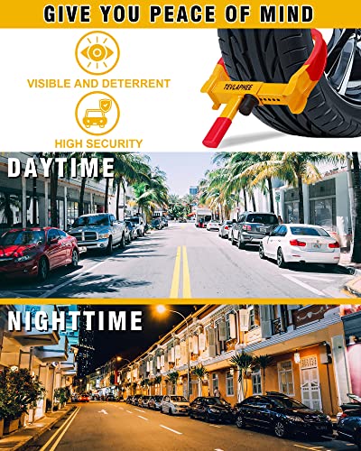Die Autokralle ist mit auffälligem und schönem Rot und Gelb gestaltet, so dass Die Wegfahrsperre äußerst auffällig ist.Die Parkkralle ist für die meisten Fahrzeuge Sinnvoll, wie PKW, LKW, Motorräder, Rasenmäher, Seher, Wohnwagen , ATVs, RV-Kleinflugzeuge, Boote, Seher, Motorroller und mehr.