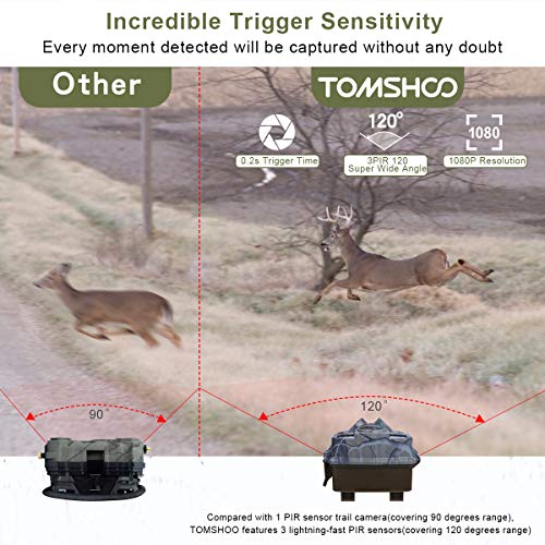Im Einigung zu anderen Sensoren hat das System der 3 passiven Infrarotsensoren eine höhere Empfindlichkeit.Die Jagdkamera wird sofort in 0,2 Sekunden am Tag ohne Verzögerung und 0,5 Sekunden in der Nacht ausgelöst. Die Abtransport beträgt bis zu 23 m.
