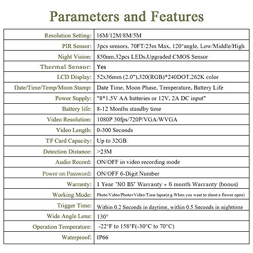 【Verschiedene Funktionen & Mehrere Anwendungen】Guss,Video,Zielaufnahmezeit,Zeitraffer,Guss+Video. Nicht zwar bei der Jagd, sondern auch bei der Haussicherheit, der Überwachung von Objekten, der Überwachung und Beobachtung von Wildtieren sowie der Sicherheit von landwirtschaftlichen Betrieben.