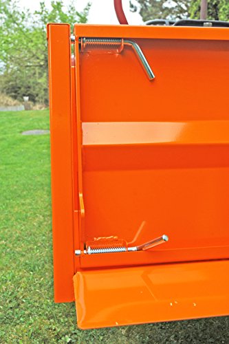 Yerd Transportboxen Die Yerd Transportboxen sind nicht zugegeben ideal für die Verladung und Beförderung von Schüttstoffen wie Futtermittel, Sand, Erde, Salz oder Schnee, sondern Aka für den sicheren Transport von Gartengeräten von und zum Anpflanzung. Schüttgüter werden einfach verladen, indem die Box mit Ihrer speziellen Schürfkante direkt rückwärts in den Materialhaufen gefahren wird. Die Schürfkante eignet sich durch Ihre Form Gewiss Aka als Auffahrrampe für Schubkarren oder Gartengeräte in die Box. Für die einfachere Verladung und Entleerung sorgt die kippbare und abnehmbare flexible hintere Ladebordwand. Sie kann über Schnellverschlüsse sekundenschnell geöffnet bzw.abgenommen werden. Aka ein Pendeln oder Klappen der hinteren Ladebordwand ist möglich. Die Transportbox ist über eine vom Fahrersitz aus bedienbare Verriegelungsmechanik mechanisch kippbar und ist somit leicht entleerbar. Über die Anschlagkette ist der Kippwinkel anpassbar einstellbar. Für Frontanbau ist ein Kuppeldreieck als Zubehör in Bereitschaft. Top Features der Yerd Transportboxen: Komplett aus Stahl gefertigt Stabile Rahmenkonstruktion Schürfleiste zum leichten Beladen bzw. zur Verwendung als Leichtgut – Heckschaufel Kippvorrichtung durch Sicherheitshebel vom Traktor aus bedienbar Heckklappe beidseitig nach oben oder herunter zu öffnen bzw. komplett abnehmbar Seitliche Bohrungen zur Ladungssicherung Lackierung: Kommunalorange Technische Daten: Transportbox für Traktoren max. 300 kg zuladbar Ladevolumen 0,35 m3 Innenmaße LxBxH: 1200 x 617 x 453 mm Außenmaße LxBxH: 1270 x 863 x 635 mm 62 kg Eigengewicht einfache Montage am Heckdreipunkt mechanisch kippbar Kippwinkel einstellbar leicht zu öffnende, pendelnd gelagerte Heckklappe äußerst stabiler Unterboden komplett einbrennlackiert Made in EU