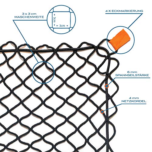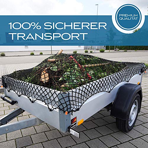 TRIBURG® Anhängernetz Dehnbar für Anhänger der GröÃen 1×2 m bis 2×3 m – engmaschig mit Gummiseil [schwarz/elastisch]