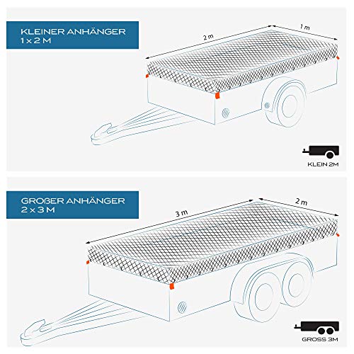 UNIVERSAL – Dieses Ladesicherungsnetz passt auf klein und groß. Ein Netz für aus Autoanhänger ab 1x2m bis 2x3m. Ladegutsicherung zum herunternehmen für fast jedes Mass.