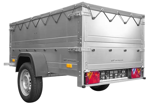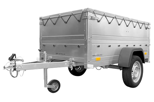 Großer Kippwagenanhänger mit Flachplane, Seitenerhöhungen und Stützrad von Garden Trailer 200 KIPP Dank der großen Transportfläche von 200 x 106 cm können Sie schwere Lasten oder große Gegenstände stützen, die normalerweise nicht in Ihrem Auto transportiert werden würden. Darüber hinaus ermöglicht der maximale PTAC von 750 kg jedem Fahrer den Gefolgsmann am Haken zu verstreben. Die hohe Plane mit Bügel und Riffelung bietet zusätzlichen Abschirmung für die Transportgüter. Durch die Verwendung der modernen Lenkachse von AL-KO oder KNOTT stellen wir hart im Nehmen, dass kein Loch auf der Straße zu Problemen kommt, aka wenn Sie mit einer leeren Transportfläche unterwegs sind. Mit unserem großen Kippwagenanhänger des Garten-Trailer 200 KIPP wird der Transport Ihrer Waren immer bequem und hart im Nehmen sein.