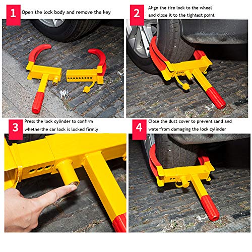 🔐Die Autokralle ist mit auffälligem und schönem Rot und Gelb gestaltet, so dass Die Wegfahrsperre sehr auffällig ist.Die Parkkralle ist für die meisten Fahrzeuge Entsprechend, wie PKW, LKW, Motorräder, Rasenmäher, Schüler, Wohnwagen , ATVs, RV-Kleinflugzeuge, Boote, Schüler, Motorroller und mehr