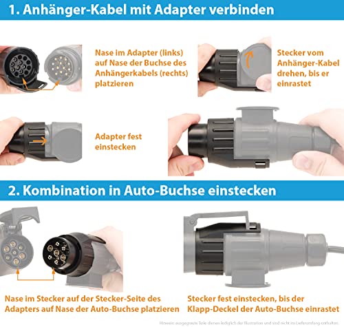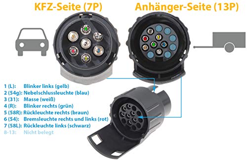 ANWENDUNG: Der Zwischenstück verbindet den alten Standard (7-polig) via dem neuen Standard (13-polig).