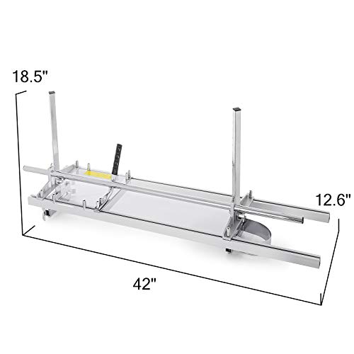 【EINSTELLBARE KETTENSÄGEN MÜHLE】- Die Kettensägen Mühle ist für Kettensägen miteiner Stangenlänge zwischen 18 und 48 Zoll geeignet. Die Höhe und Breite des Beplankungsfräsenssind einstellbar.