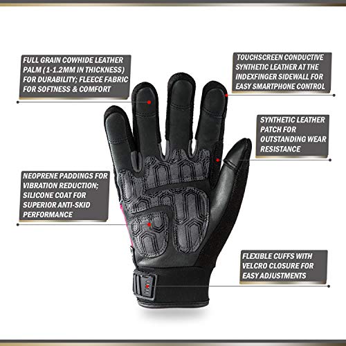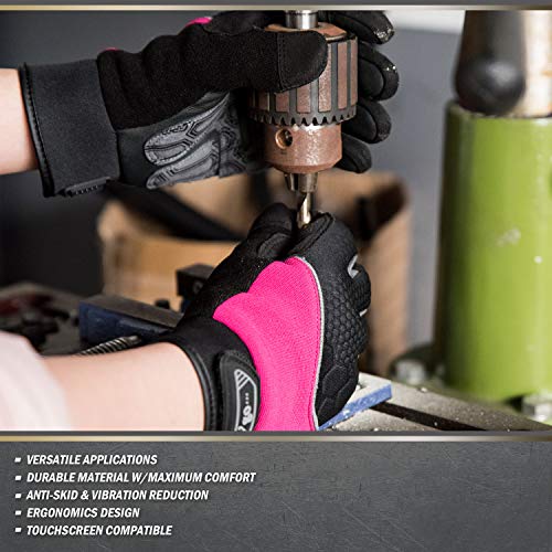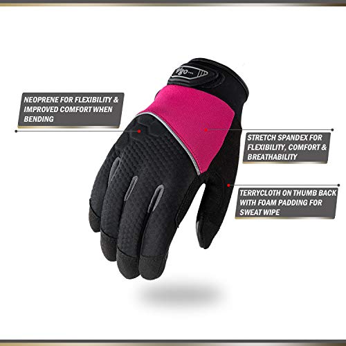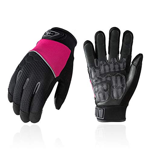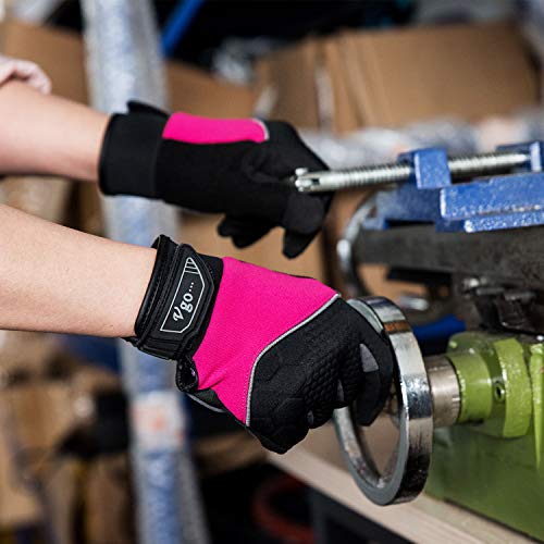 Vgo 3 Paare Mechaniker- und Arbeitshandschuhe für Damen, aus Kuhleder und Spandex mit Schaumpalmen, Toucscreen…