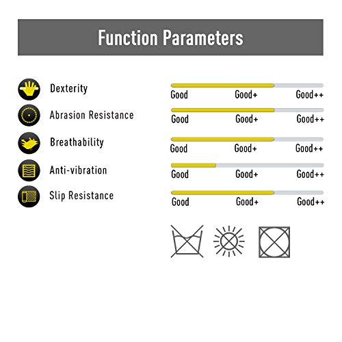 SPEZIALITÄTEN: ◆ Flexible Fingerkuppen und Rückseite mit thermoplastischem Gummi (TPR) vor Schlag und Abration ◆ Gepolsterten Aufsätze bieten zusätzlichen Schlag-Schutz für die Knöchel ◆ Weiches Frottee am Daumen zum Abwischen