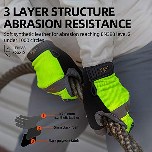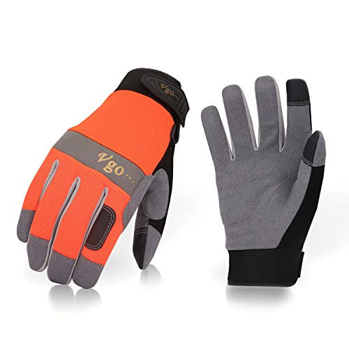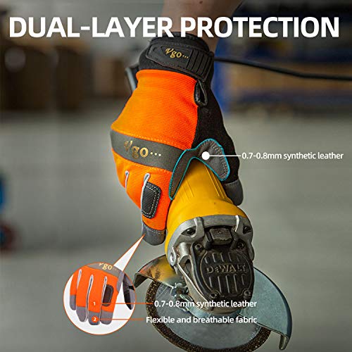 Vgo Arbeitshandschuhe, aus Spandex und Sythetik, Kunstleder mit extra Innenschaumschichtpalmen, Lager, Handwerk und Mechanikarbeit(1 Paar, 9/L, Orange, SL7584)