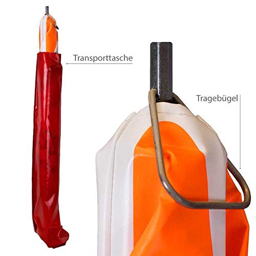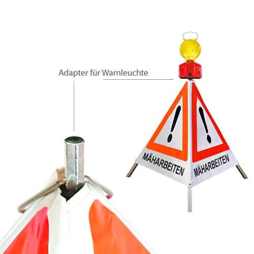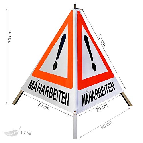 Diese Erledigung mit Mittelfuß ist sehr leicht in Gewicht wie vulgo Handhabung. Das leuchtrote Warndreieck auf tagesleuchtend weißem Hintergrund übersieht garantiert niemand.