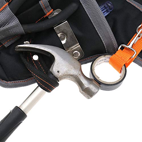 – Einfach zu bedienen: Mit vielen Fächern, Schlaufen und Taschen, einfacher Abruf und Platzierung Ihrer Werkzeuge, wie Hammer, Nägel, Schraubendreher, Schrauben usw.