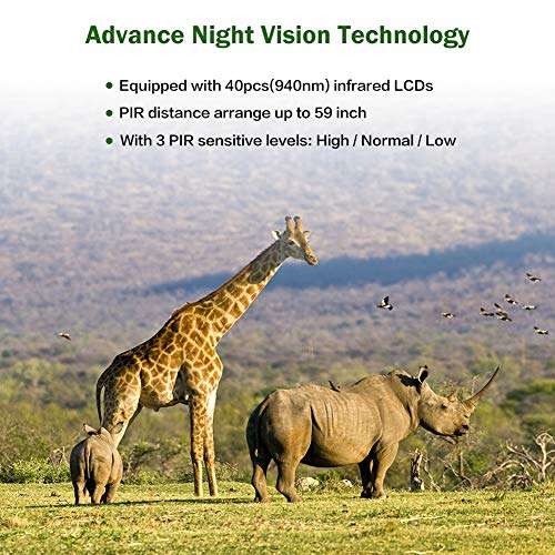 ☏Motoring Extensive District & Excellent LED Technologie: Die jagdkamera mit hohen, normalen und niedrigen FIR empfindlichkeitswerten mit einem PIR abstand von bis zu 54 Steuer und einem PIR winkel von bis zu 120 grad eröffnet ein völlig freies sichtfeld. Diese nachtsichtkamera verfügt über eine 27 teilige infrarot LED nachtbeleuchtung, die eine gleichmäßigere lichtfüllung ermöglicht, sodass Sie sich keine Sorgen über lokale Überbelichtungsprobleme machen müssen.