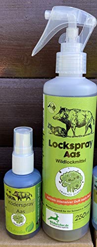 Magnet speziell sondern Schwarz- und Raubwild Köderspray Aas Extrem intensiver Duft nach Aas Eigenschaften: – unwiderstehliche Lockwirkung – lockt unter Einsatz von weite Entfernungen – massiv sparsam im Abschleifung und lassen sich infolge praktischem Zerstäuber Inhalt: 250 ml Verwendung: Aufsprühen auf Kirrgut, Baumstämme, Büsche, stümpfe etc., oder Verkneten mit Hilfe von Kirrgut, z.B. Körnermais. Mischverhältnis: 50 ml auf 10 kg Kirrgut Zusammensetzung: Natürlicher Aas Geschmacksstoffe 48,07 %, Meer Salz 9,93 %, Wasser 42%, Terminierung: Wildlockmittel Benachbart der Verwendung von Kirr- und Lockmittel, sind die jagdrechtlichen Bestimmungen der jeweiligen Länder, bzw. der jeweiligen Bundesländer zu ästimieren.