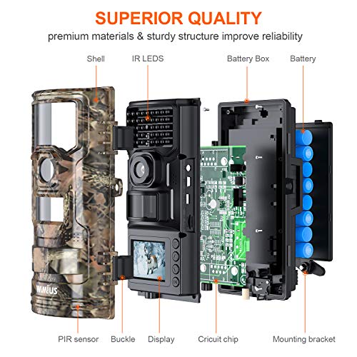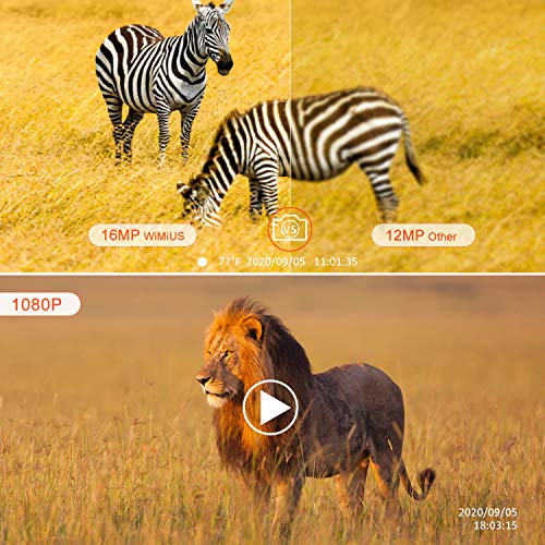 【16MP FOTOS & 1080P HD VIDEOS】 Die WiMiUS H7 Wildkamera nimmt Videos Durch einer Zerteilung von 1080P und Fotos Durch 16MP in guter Qualität auf. Es handelt sich um eine native 1080P Zerteilung, nicht interpolierte.