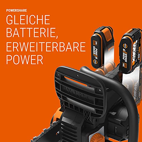 Die kettensäge kann per allen WORX 20V PowerShare Akkus genutzt werden